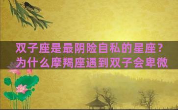 双子座是最阴险自私的星座?为什么摩羯座遇到双子会卑微 当前位置:首页星座双子座双子座是最阴险自私的星座?为什么摩羯座遇到双子会卑微/双子座是最阴险自私的星座...…… 本站原创 2025-10-27 12:29:08