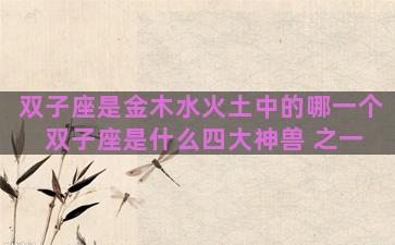 双子座是金木水火土中的哪一个 双子座是什么四大神兽 之一 当前位置:首页星座双子座双子座是金木水火土中的哪一个 双子座是什么四大神兽 之一/双子座是金木水火土中的...…… 网友投稿 2025-10-24 17:29:01