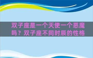 双子座是一个天使一个恶魔吗?双子座不同时辰的性格 当前位置:首页星座双子座双子座是一个天使一个恶魔吗?双子座不同时辰的性格/双子座是一个天使一个恶魔吗?...…… 网友投稿 2025-12-16 10:30:17