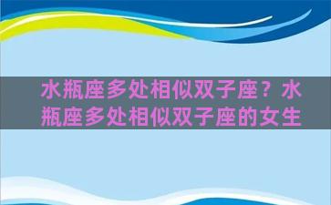 水瓶座多处相似双子座?水瓶座多处相似双子座的女生 当前位置:首页星座双子座水瓶座多处相似双子座?水瓶座多处相似双子座的女生/水瓶座多处相似双子座?水瓶座...…… 侠名 2026-04-15 23:40:03