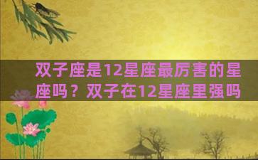 双子座是12星座最厉害的星座吗?双子在12星座里强吗 当前位置:首页星座双子座双子座是12星座最厉害的星座吗?双子在12星座里强吗/双子座是12星座最厉害的星座吗...…… 网友投稿 2025-12-17 08:00:13