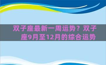 双子座最新一周运势?双子座9月至12月的综合运势 当前位置:首页星座双子座双子座最新一周运势?双子座9月至12月的综合运势/双子座最新一周运势?双子座9月至...…… AI创作 2025-09-20 00:21:02
