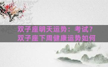 双子座明天运势:考试?双子座下周健康运势如何 当前位置:首页星座双子座双子座明天运势:考试?双子座下周健康运势如何/双子座明天运势:考试?双子座下周...…… 原创编辑 2026-01-01 18:00:11