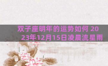 双子座明年的运势如何 2023年12月15日凌晨流星雨 当前位置:首页星座双子座双子座明年的运势如何 2023年12月15日凌晨流星雨/双子座明年的运势如何 2023年12月...…… 网友投稿 2026-01-01 15:00:15