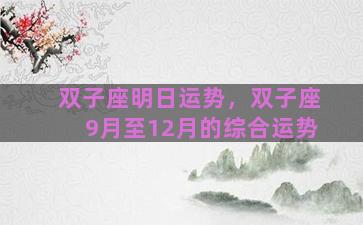 双子座明日运势,双子座9月至12月的综合运势 当前位置:首页星座双子座双子座明日运势,双子座9月至12月的综合运势/双子座明日运势,双子座9月至12月的综...…… AI创作 2025-12-31 09:00:14